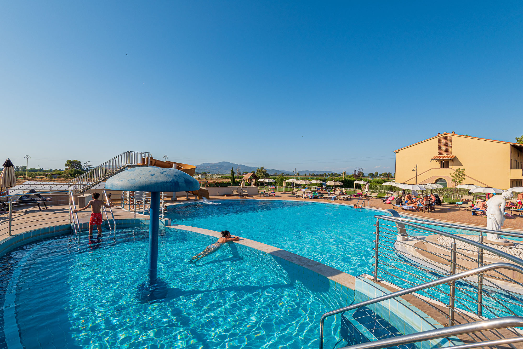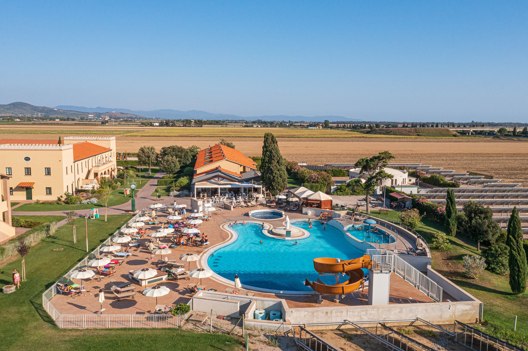 Una fattoria del secolo scorso ristrutturata e trasformata in un resort, proprio centro della Val di Cornia, tra campi di girasoli e grano Salvapiano si integra perfettamente con la campagna circostante, con i suoi prati verdissimi, un ristorante da leccarsi i baffi e piscine per grandi e piccoli di ogni età, questa struttura è un posto ideale per famiglie e viaggiatori in cerca si una basa per le escursioni in bici.